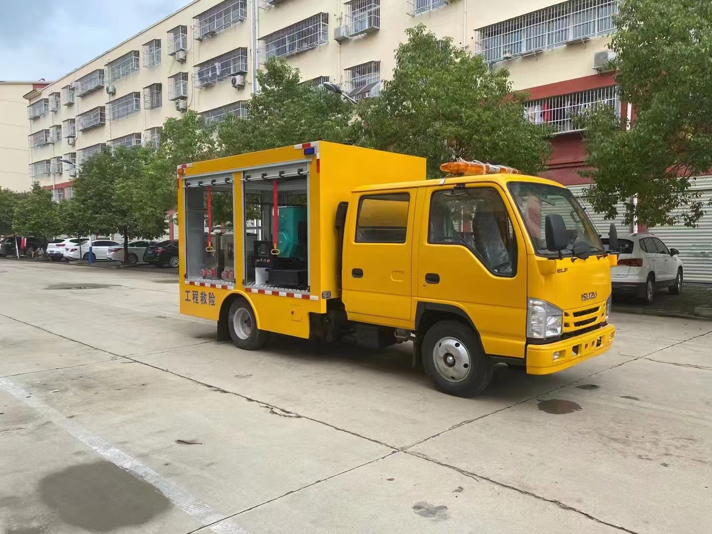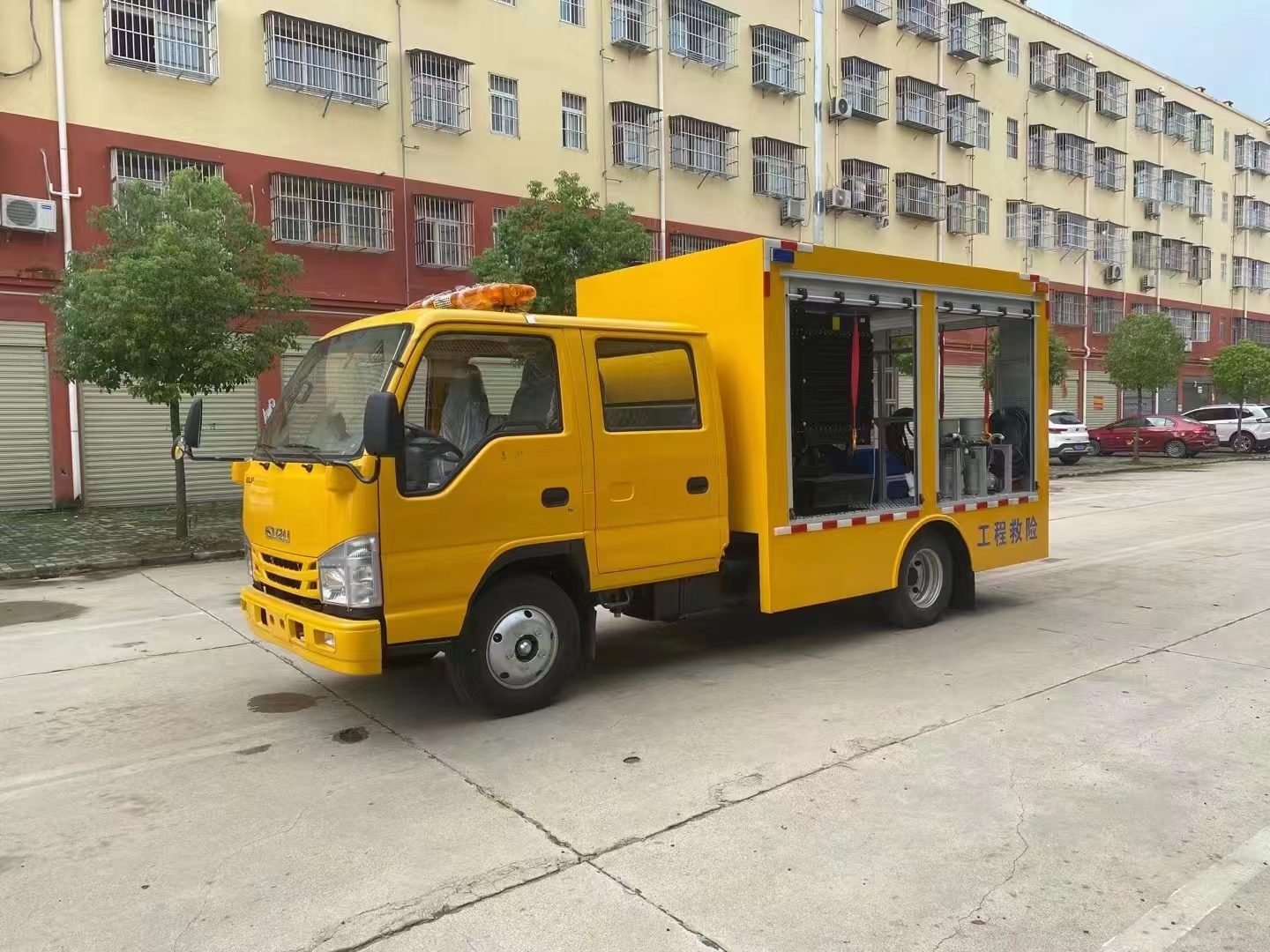 | 上装配置 | 车箱一体式全封闭车箱车箱有隔音功能,厢体防火,阻燃,防雨,防尘,防锈,降噪,隔震,长期抗震结构,厢体外观按照公告外观制作,左右卷帘门,尾部是卷帘门,厢内安装LED作业灯,作业灯带独立开关,底板采用花纹板。配备康明斯50KW发电机组,2台功率22KW便携式超轻型高速潜水泵,单台水泵流量可达500m³/h,单泵配40米排水管(20米/根),水管直径 DN200mm,水管材质为涤纶长丝编织。配有升降照明灯,升降灯可通过无线和有线遥控两种方式控制,升降灯升降高度为1.2米,可水平旋转。带接地桩和接地电缆线,便携泵控制柜,潜水泵浮圈,长排警灯,倒车影像,配两只手提式干粉灭火器2只。其余为标配… | ||